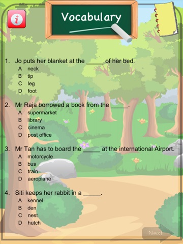 Sang Kancil Primary1 English Free is an educational app for Primary1 students to practice their English through grammar, vocabulary and cloze exercise. Each exercise is interactive and allows the student to practice their English while keeping them interested in the learning process. Apart from the exercises, there is also a year end exam that the student can practice to gauge their performance.