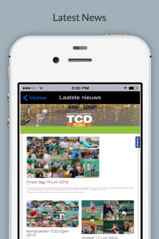 Het Sani-Dump TCD Open 2016 wordt gehouden van zaterdag 11 juni tot en met zondag 19 juni 2016 op het tennispark van TC Dubbeldam te Dordrecht. In deze app kunt u het laatste nieuws bekijken, maar ook eenvoudig de wedstrijdschemas vinden.
