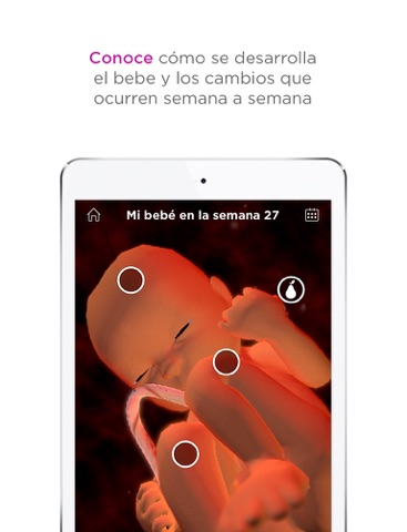 - Espectaculares imágenes a color con modelos interactivos en 3D de cómo tu bebé está creciendo dentro de ti.