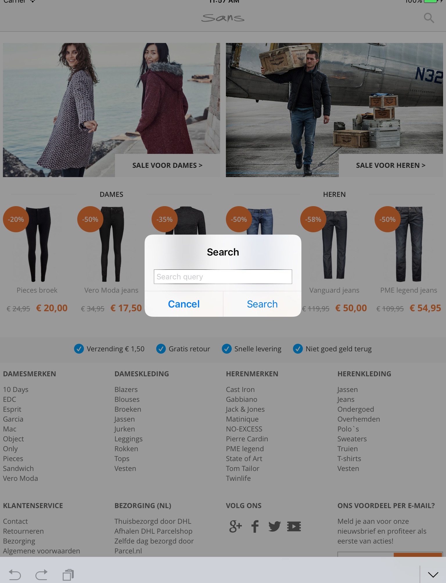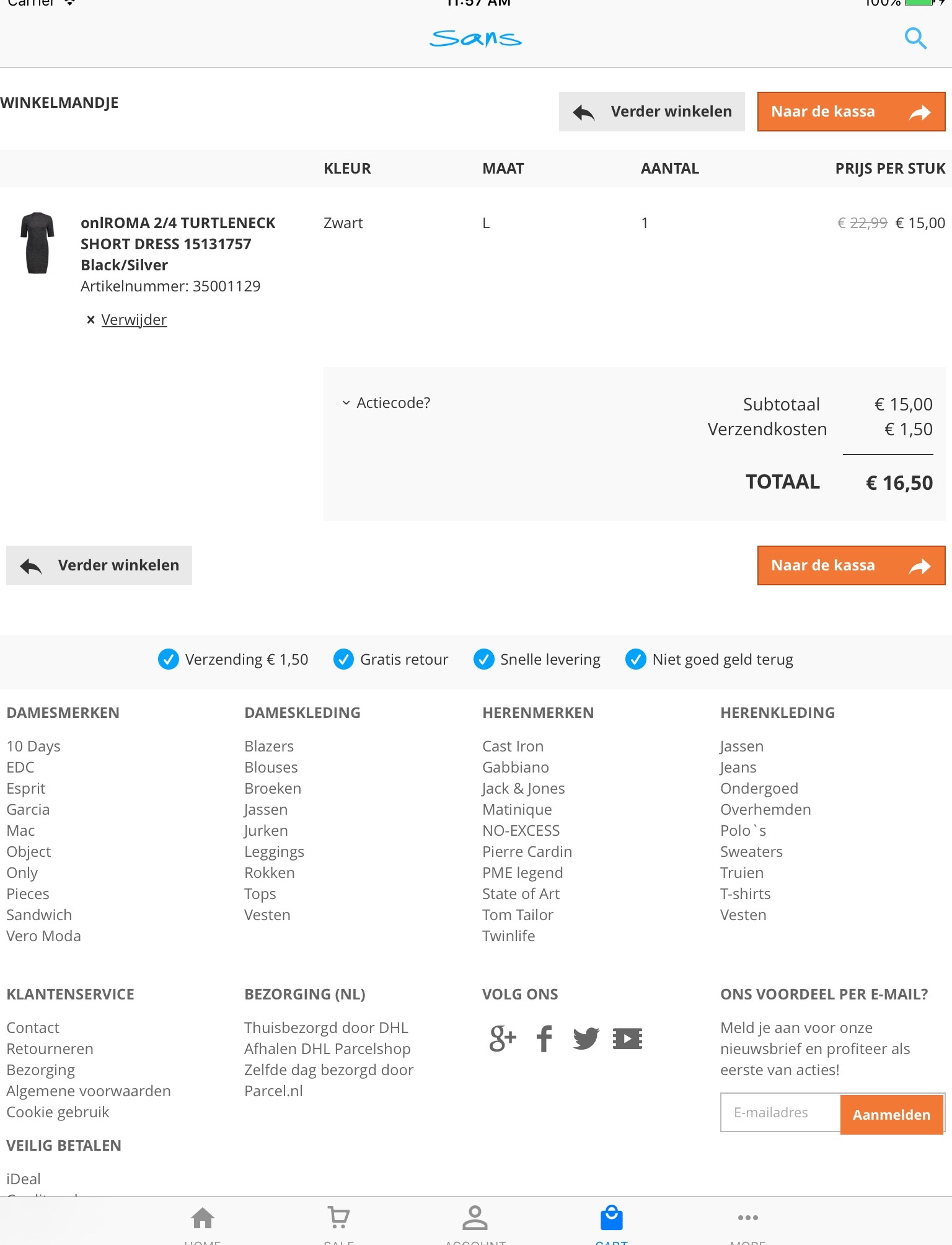 De grootste online kledingwinkel van Twente met zowel dames- als herenkleding van o.a. Only, PME Legend en Vero Moda. Thirty years ago, Sans started out as a clothing store in Rijssen, in the Dutch province of Overijssel. It was originally founded by Herman Sans but nowadays his sons Tom and Nick Sans are in charge. In 2008, they started a webshop. A smart move, because Sans Online has now grown into a leading webshop with a Twinkle100 rating. Tom Sans: “Buckaroo fits our shop perfectly. We’ve been in business for over 10 years.”