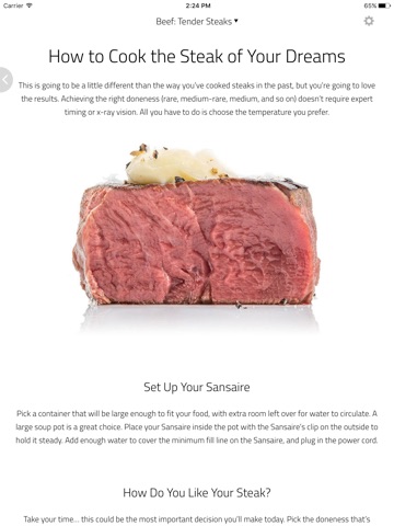 Sansaire makes perfect sous vide cooking easy. The Sansaire app provides sous vide times and temperatures at your fingertips for your preferred doneness. The recipe section provides a broad variety of cooking ideas from fast, simple sous vide recipes to more complex options that will impress your dinner guests. The recipe filter options allow you to navigate to the foods you want. The Sansaire team continues to create new recipes and test customer recipes to include on the app. You’ll continue to find new culinary ideas to try at home.