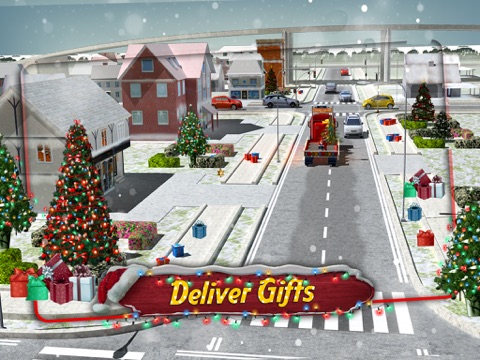 Santa decided to give the reindeer and the elves a day off! Ride around the streets in your very own Christmas gift delivery truck and drop the gifts off!
