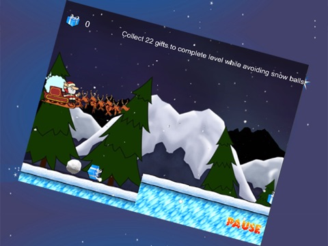 Help Santa Claus to give to the children their gifts. Collect gifts and avoid snow balls while running with the sleigh. There are two stages "Mountains" and "City" with 40 levels each
