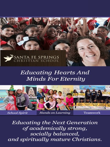 The mission of Santa Fe Springs Christian School is to partner with parents to equip and nurture children from a Christian world view, producing responsible, God-honoring, socially balanced, and academically strong life-long learners, who impact their world for Christ.