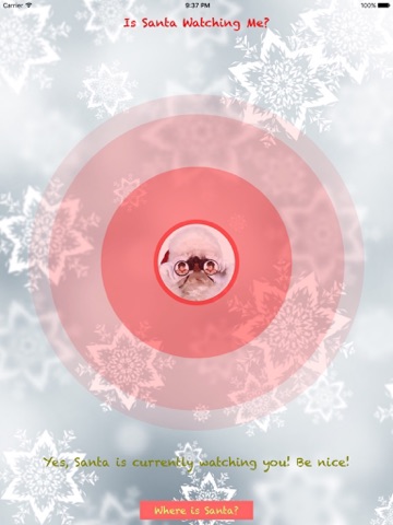 Is Santa Watching Me? allows you to detect if Santa Claus is watching you! Santa Claus watches all kids to determine if they should be placed in the nice or naughty list. By knowing if Santa is watching you, you can put on your best behavior and receive all your gifts for Christmas!