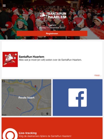 The Santa Run Haarlem 2017 is een mobiele app waar alle informatie omtrent het evenement instaat. Verder bevat het leuke features als een best Santa-Selfie contest. Ook vind je hier direct na de race jouw uitslag.