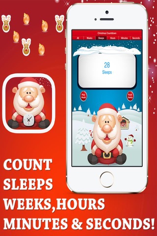 Countdown to Christmas using Santas festive countdown timer, which not only lets you see exactly how long it is until the festive season is among us, but also by playing lots of well known happy festive songs as well to create the ultimate festive fun filled app!
