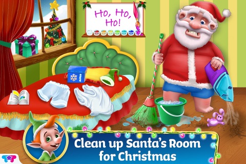 Santa is so busy collecting presents for Christmas, he hasnt even had the chance to clean up his messy house! Help Santa as you clean up his messy house in time for the Christmas holiday! Do the laundry, match the stockings, hang Santas clothes, clean up the messy living room and plant your own beautiful Christmas tree! You can even dress up Santa in a variety of CRAZY cute outfits!