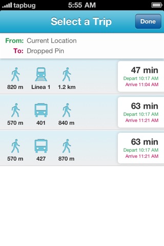 Not bad, so far. One big problem: the "From" box is invisible on my iPhone 3GS, iOS 6.1.6. I can still enter data there, but it is invisible too. So I enter it in Notes and copy/paste. Maps show lots of detail, but bus stops seem to be slightly misplaced and viewing your route has too many steps. A plus is that you can enter the time of your trip. ITranssantiago is easier, but has less detail on map. Neither does a good job of combining bus and subway.