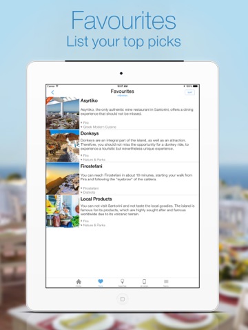 SANTORINI by GREEKGUIDE.COM is completely free of charge and all the information barring weather, navigation and currency conversions is accessible offline. The ability to use the app without the need for internet access is particularly useful for visitors from abroad who wont incur roaming charges.