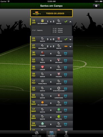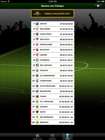 De um jeito prático, "Santos em campo!" traz a você alertas configuráveis de quando o Santos FC entra em campo, tabela do Paulistão 2013 e calendário de jogos do Peixe.