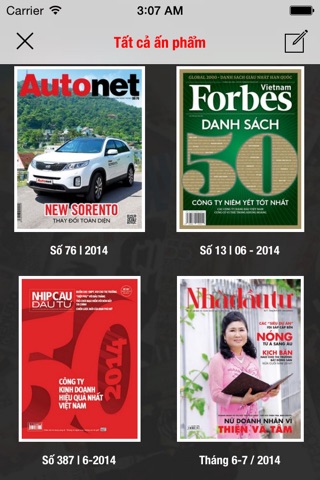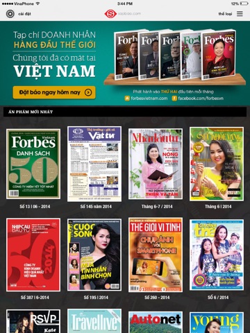 Danh mục tạp chí sẽ liên tục cập nhật: Xã hội thông tin; Nhịp cầu đầu tư;Du lịch & Giải Trí (Du lich & Giai tri); Mỹ Phẩm (My Pham); Doanh Nhân Việt (Doanh nhan viet); Siêu Thị Số (Sieu thi so); Cham soc suc khoe (Health care); cam nang mua sam (Cẩm nang mua sắm( ; Man & Life; Phong cach doanh nhan (Phong cách doanh nhân); The gioi vi tinh (Thế giới vi tính); the gioi games (thế giới games); RSVP; Tạp chí Bầu (Tap chi Bau); tap chi thuong gia; the gioi dien anh (thế giới điện ảnh); Forbes VietNam, Nhip cau dau tu….