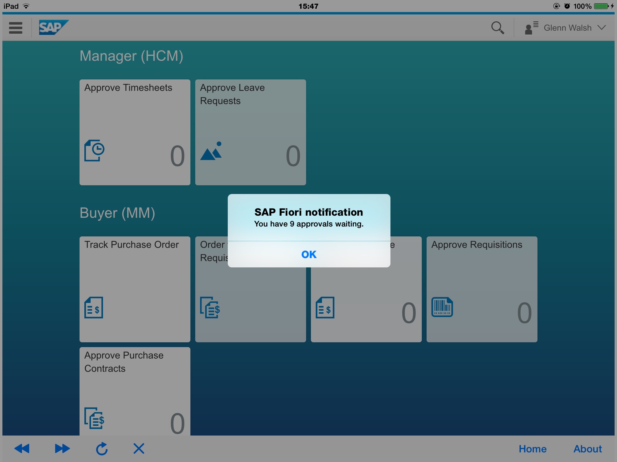 The SAP Fiori Notifier App provides the standard features of the SAP Fiori launchpad: