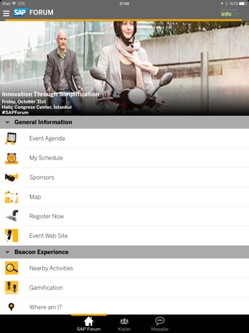 İlgi alanınıza göre ajandanızı oluşturmak, katılımcılar ile iletişim kurmak ve Bluetooth 4.0 LE beacon teknolojisi desteği ile interaktif forum deneyimi için mobil uygulamamızı indiriniz.