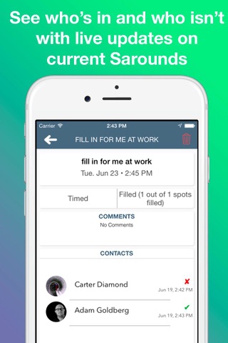 -Time Delay requests: Send a delayed query so that your preferred contacts get the request before the others. Once someone accepts, the job is no longer offered to anyone else on the list.