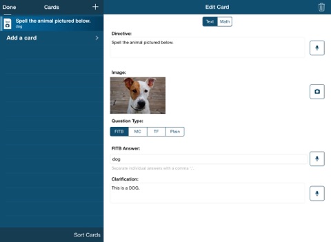 Include text, images and audio. Easily draw images or take pictures for your cards. Record your voice for vocabulary or language learning.