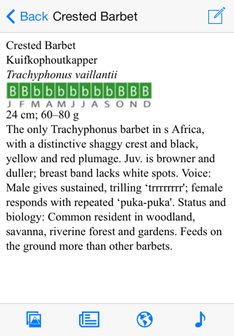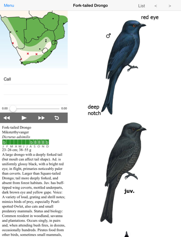 This lite version describes 30 common species of South Africa. Each species of bird is illustrated with a few color illustrations. There are also audio recordings of each species as well as range maps.