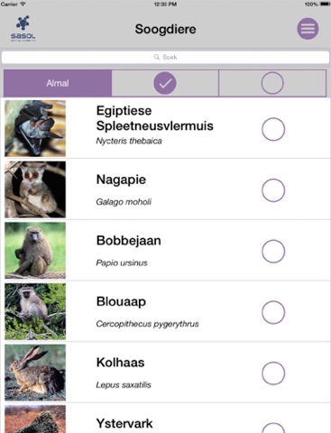 Die toep is handig en maklik om te gebruik, en is n ryk bron van inligting oor die mees algemene diere wat jy in die streek sal teëkom – óf in ’n nasionale park of naturreservaat, óf op ’n staptoer in die natuur, óf selfs langs die kus. Van die ‘Groot Vyf’ tot die soogdiere wat in die oseaan leef, hierdie toep dek alles.