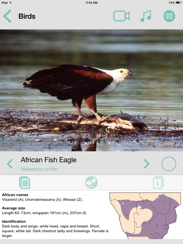 Quick and convenient, this app highlights the bird species you are most likely to spot in your neighbourhood, near wetlands, dams and rivers, or while out in the bush. The app is perfect for beginners, or someone visiting the region for a short while. It includes beautiful photos, videos, bird calls, maps and easy-to-read information about the species (including their conservation status).