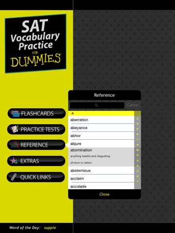 Study on the go and where ever life takes you with SAT Vocab Practice for Dummies. With this app in your study toolkit, everything you need to know to ace the verbal part of the SAT is right at your fingertips. So whether you’re taking the test for the first time or the tenth, this app covers what you need to know to get test-ready.