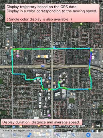 This app can display the trajectory of GPS logs colored with movement speed on the map.