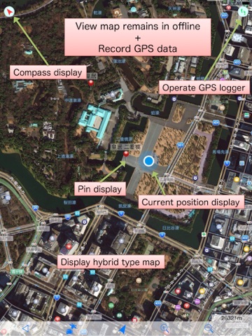 Displays the satellite photo type of map without cellular data (offline). Normal map can also be displayed.