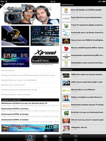 De nieuwste mediaberichten en artikelen op je iPhone én iPad. Je kunt alles ook offline lezen. Neem daarnaast een kijkje in de wereld van het satelliet-hunten en stel je vragen op het ingebouwde forum.