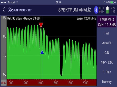 SATFINDER BT DVB-S2 application, the satellite signal is measured and analyzed with the making an additional patented electronic device. That communicates via Bluetooth; Satellite Antenna Signal measurement that work without additional equipment. For Signal Meter please contact : www.alpsat.com