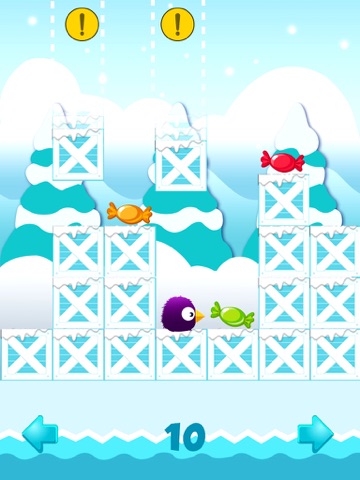 To do that, you just only have to tap left and right on the screen to move me back and forth. the incoming box indicator will blink up. So be aware of that. Just avoid the boxes and take me to my candies.