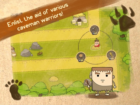 * Plan your defensive strategy! Each Caveman has specific strengths and abilities that make them well suited to fight off certain animals. Tank Cavemen are super strong and Mud Cavemen slow down animals with their mudballs!