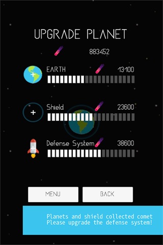 Collect this Meteor money can be used to upgrade the Earth and the shield and defense system.