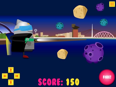 Huge astroids are falling from space and only one cat can save the day, armed with his trusty jet pack and laser gun he is ready to stop them and save earth!