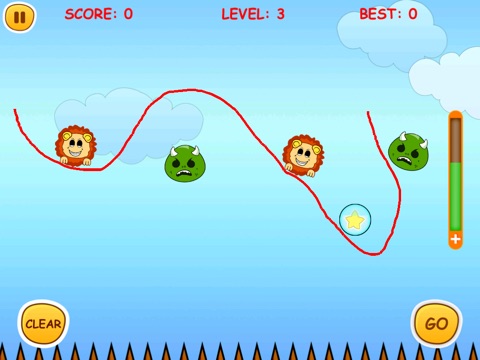 Save the Lion is a free game app with 30 levels where the user has to save the protagonist (or protagonists in some levels), a lion (or lions in some cases), from the antagonists (demons) or from a free fall, both of which lead to a sure death. This is done by drawing lines to guide the lion(s) to safety and hence save them.