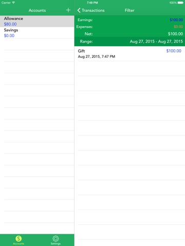 Savings Assistant helps you save more money. It helps you keep track of your expenses and earnings. It also groups those transactions into Accounts so you can manage your transactions easily. You can also filter your transactions by date, which helps in computing your savings by day, month, year, or a lifetime!
