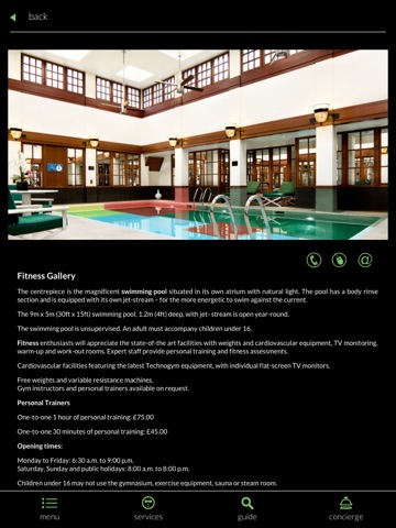 You will be able to browse the Savoy services and see the full range of facilities that are available to guest. You are then able to enquire or book through the device by using thecontact options within the results page.