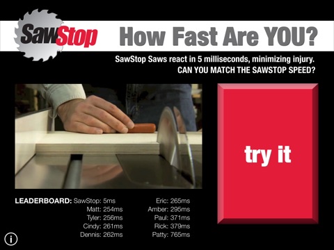 The maker of the World’s Safest Table Saw (and North America’s #1 table saw) is throwing down a challenge. Their patented safety system stops a spinning blade on contact with skin in less than 5 milliseconds. Can you beat their time? Accept the challenge today!