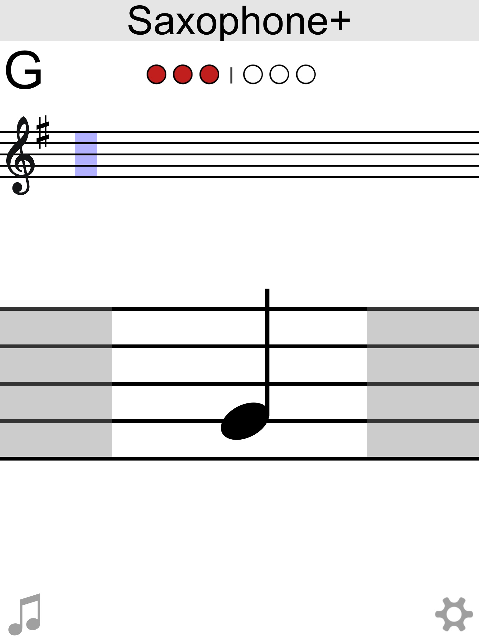 Saxophone+ is an interactive fingering chart for alto saxophone. Tap the music staff to see the note, its name, and fingering, PLUS hear its sound.