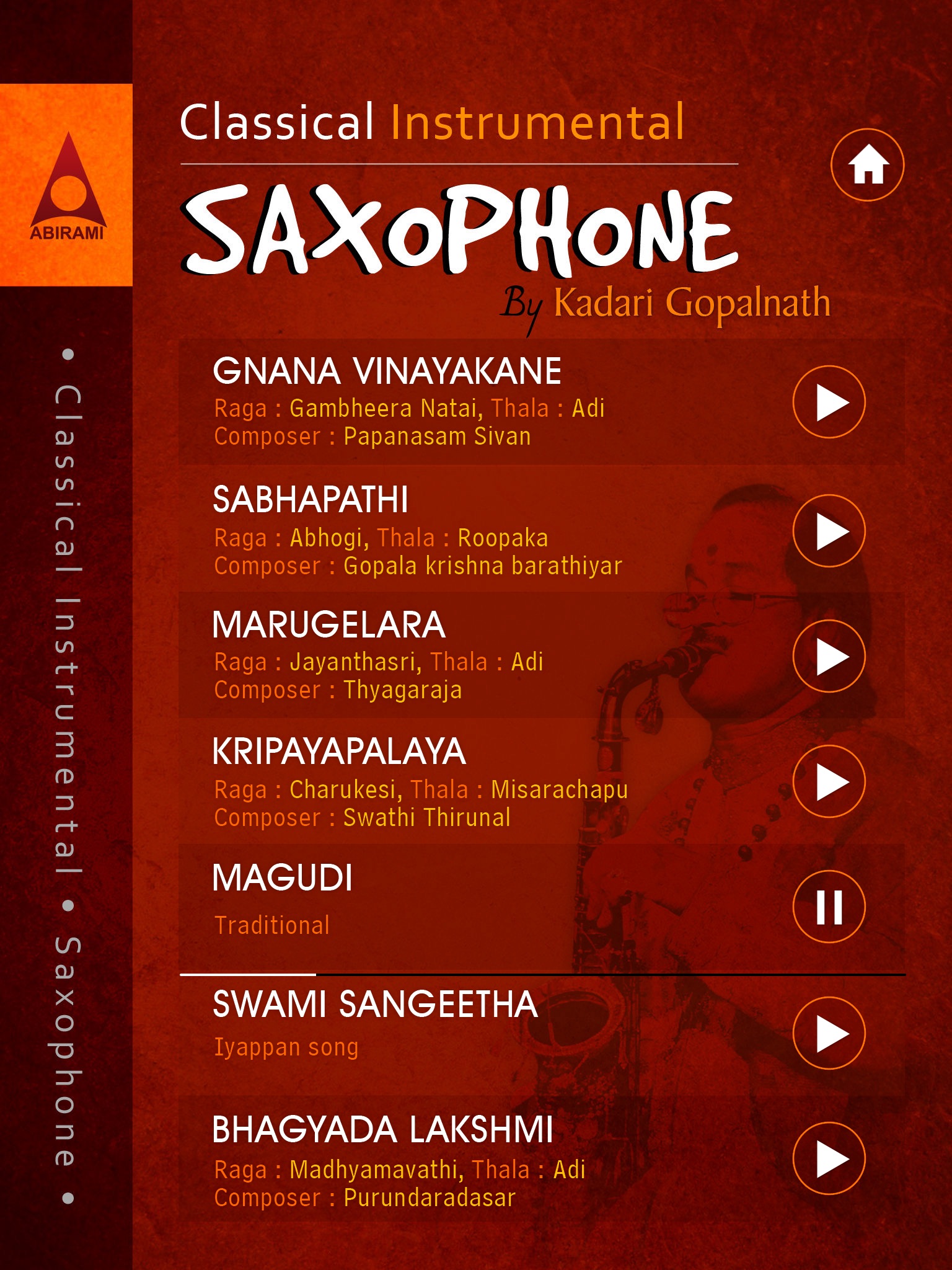 Listen to one of the most enchanted music on Saxophone by Kadri Gopalnath. This App has a collection of Famous composers like Papanasam Sivan, Gopla Krishna Barathiyar,Swathi Thiurnal, Thyagaraja, and Purundaradasar.