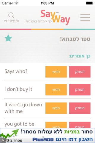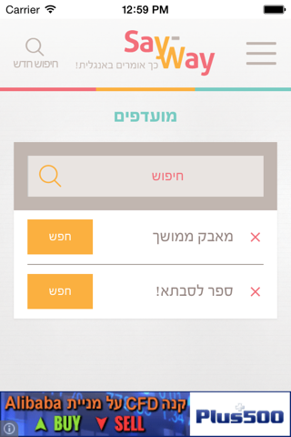 Say-Way כך אומרים באנגלית! מציע לך את התשובות באנגלית לאלפי ביטויי-לשון עבריים שימושיים, כמו גם את התשובות בעברית לאלפי ביטויי-לשון שימושיים בשפה האנגלית.