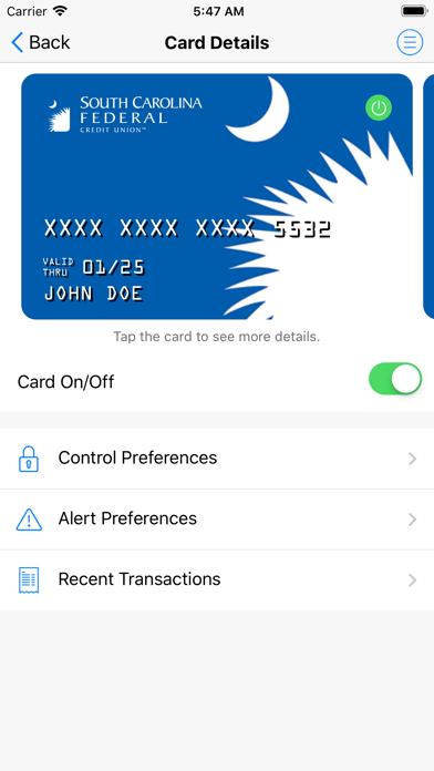 SC Federal Card Controls, provided by South Carolina Federal Credit Union, protects your cards by sending transaction alerts and enabling you to define when, where and how your cards are used.