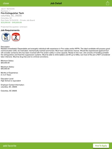 With SC WORKS Mobile’s unique “Jobs Nearby” function you can easily map all the latest jobs near your current location. Search for jobs around your neighborhood or a different location. Simply tap color-coordinated pins to see more information or to apply for a job.
