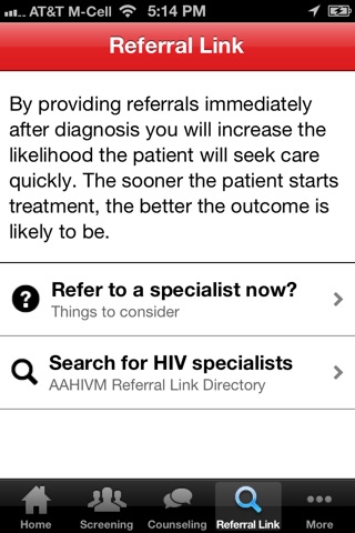 A key component of the app is the AAHIVM ReferralLink database, available now for the first time on a mobile device.
