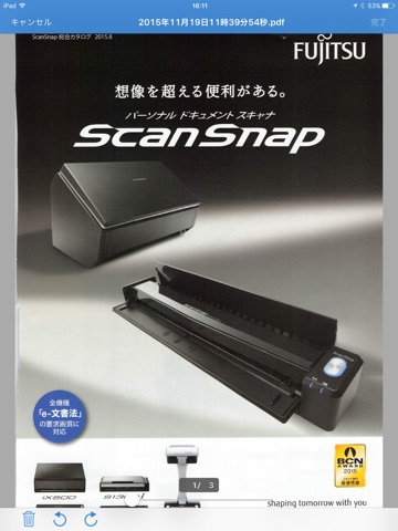 ●ScanSnapでスキャンしたイメージデータ(PDF/JPEG)を、シームレスに受信し閲覧することが可能。