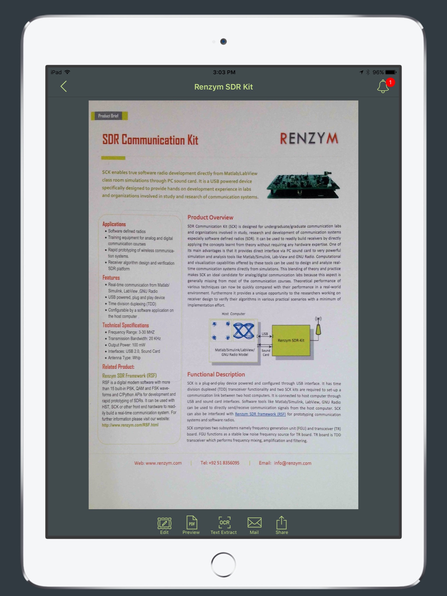 * Easily share documents in PDF or JPG format via social media or email attachment
