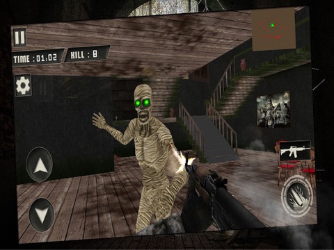 Experience shooting the living dead in the real haunted house environment. Creepy creatures like skeleton, zombies, mummies are hiding in the house. Shoot them down before they kill you. Shooting in this dark and scary house is very challenging. So get ready for a real nightmare. Test your shooting skill and enjoy the most thrilling dead hunting in this haunted house escape game.