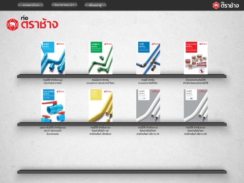 ชั้นหนังสือรวมแคตตาล็อคสินค้าพร้อมใบแนะนาราคาขนาดของท่อทุกแบบ จากผู้เชี่ยวชาญเรื่องท่อเหมาะกับสถาปนิก ผู้รับเหมาที่ต้องการค้นหาสินค้าหลายพันรายการจาก ท่อตราช้าง ที่รวมทุกเล่มไว้ในแอปพลิเคชันเดียว เพื่อความสะดวก รวดเร็วในการค้นหานอกจากนี้ยังมีหนังสือแนะนาเรื่องน่ารู้เกี่ยวกับการเดินระบบท่องานก่อสร้างและการรับมือกับ ปัญหาน้ำท่วม สำหรับผู้สนใจทั่วไปอีกด้วย