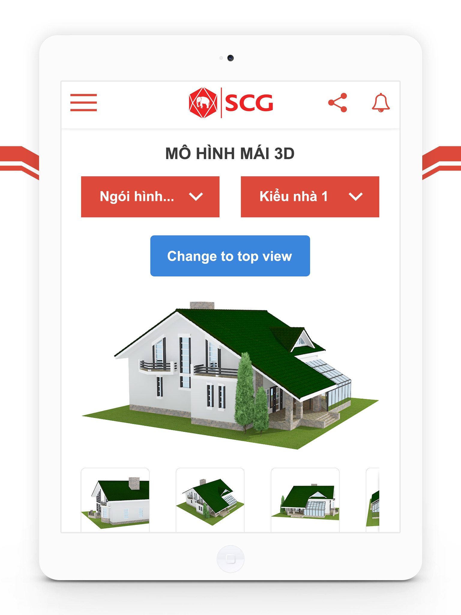 • Xoay mô hình 360 độ để quan sát các góc của ngôi nhà sau khi lợp ngói