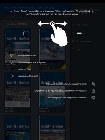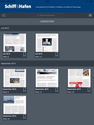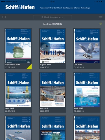 - Die integrierte Suchfunktion erleichtert Ihnen das Finden gewünschter Inhalte in allen von Ihnen heruntergeladenen digitalen Ausgaben der Schiff&Hafen.