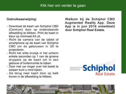 Deze App geeft middels Virtual Reality een impressie van bestaande en toekomstige commerciële vastgoedontwikkelingen op Amsterdam Airport Schiphol Central Business District (CBD). Klik op de druppels en kijk rond in bestaande of mogelijk toekomstige vastgoedontwikkelingen.