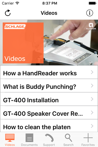 This application makes it easy to access information for Schlage HandPunch biometric readers. While installing a reader or enrolling new users, you can retrieve our user guides with ease. Use your mobile device to view technical notes and how to videos. Or, check on the latest case studies and current product datasheets. This is your go-to source for keeping information on Schlage HandPunch products right at your fingertips. Simply browse through the menus to find what you need.
